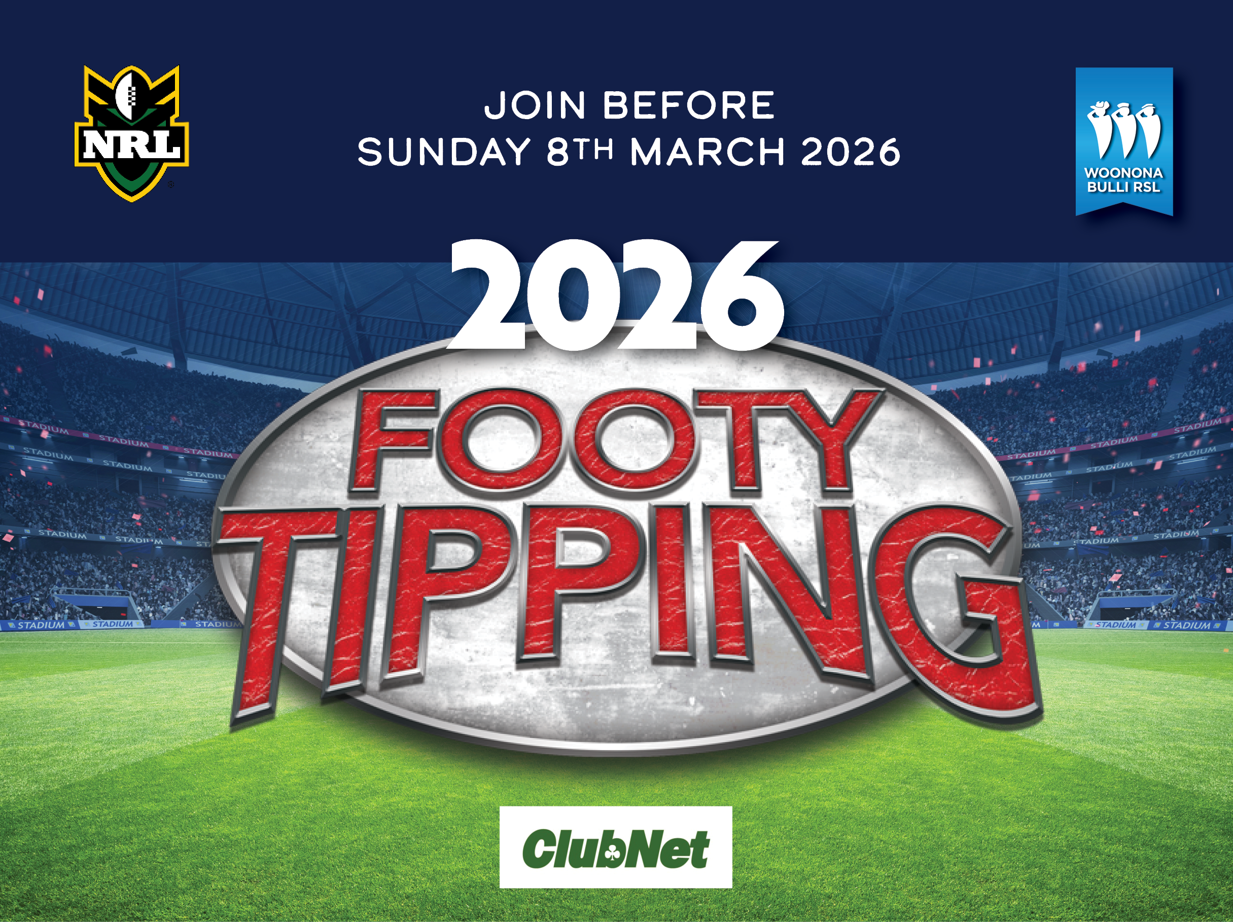 455 Princes Highway, Woonona, NSW, 2517Footy Tipping is back for 2026! First round kicks off Sunday 1st March, 2026. $20 entry + the Club will double the prize pool! Register at reception - Join before…